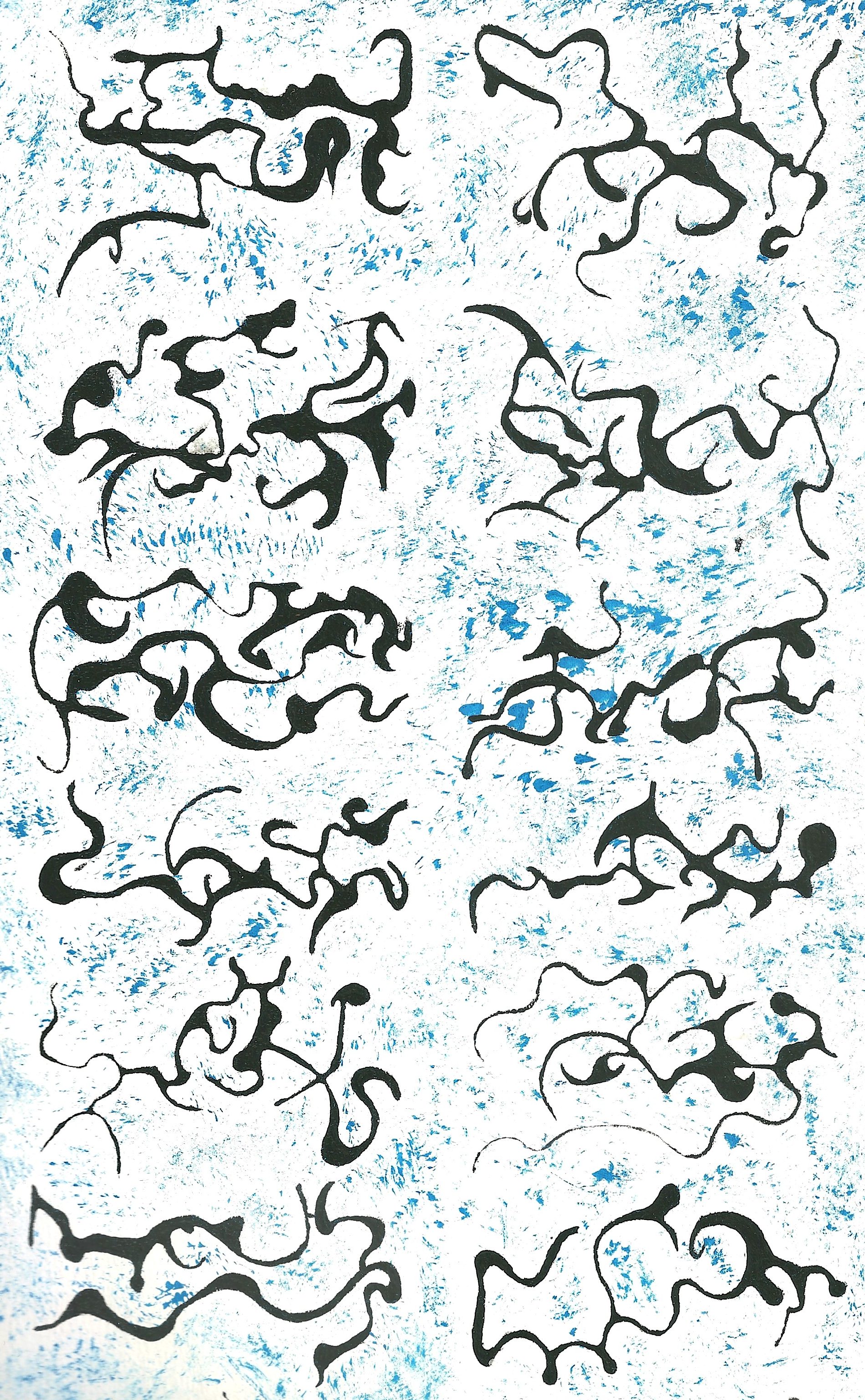 L’extrait de ci-dessus date d’un quart de siècle. Mais aujourd’hui, j’ai envie de partager avec vous cette « peinture » reflétant un autre aspect littéraire: une expression calligraphique. Je combine souvent la peinture et l’écriture. Ainsi, je vous fait part de mes réflexions de l’époque: